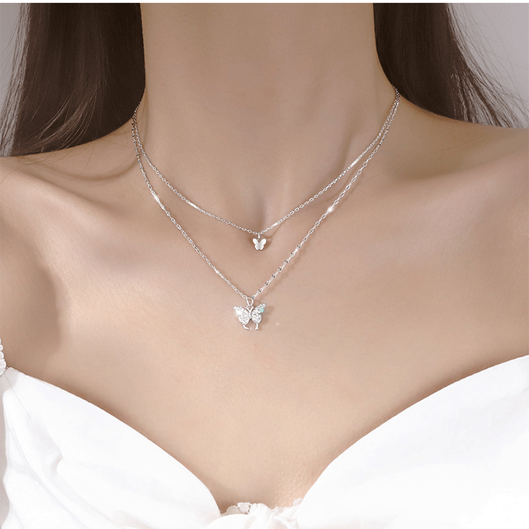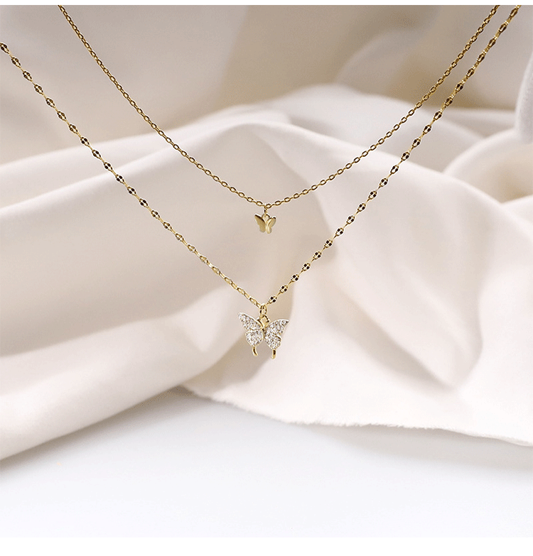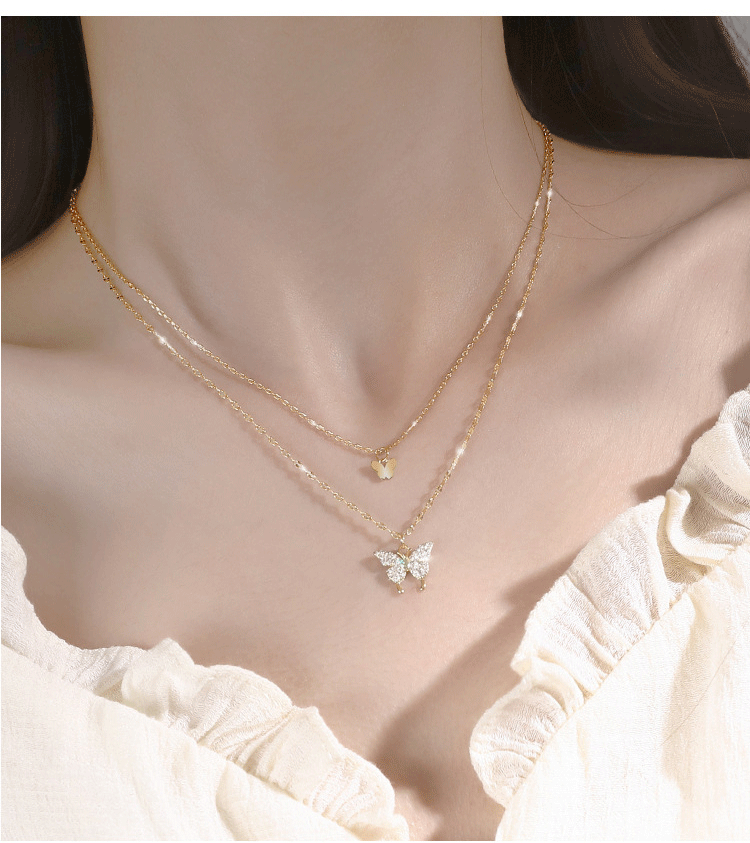 【蝶モチーフ二重ネックレス】蝶モチーフ、二重、コーデしやすい、エレガント、オリジナル